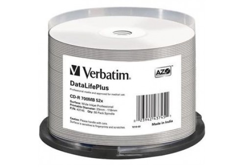 Verbatim CD-R 700MB 52X Speed 50 Pack Wide White Printable